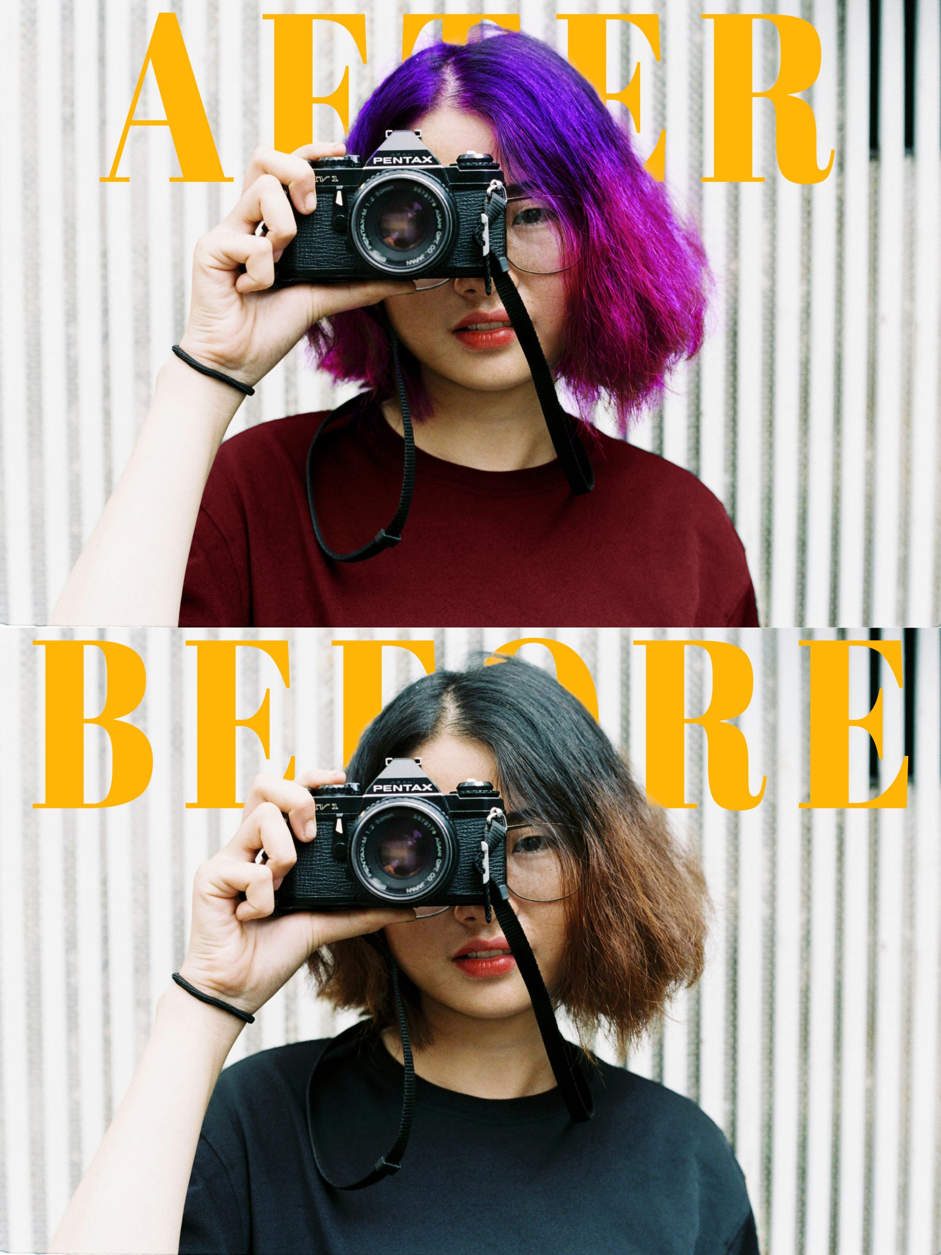 I adjusted the model's hair and T-shirt colors in the photo to enhance the overall look.